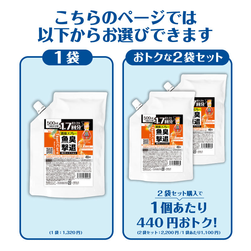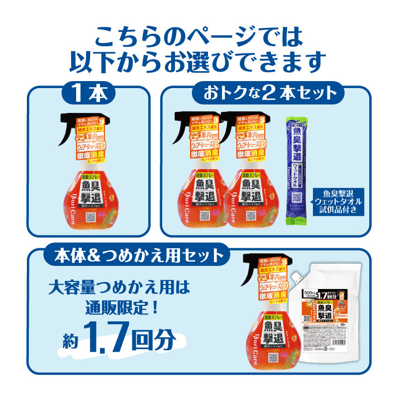| 品名 | 魚臭撃退 消臭スプレー 本体1本とつめかえ用1袋 |